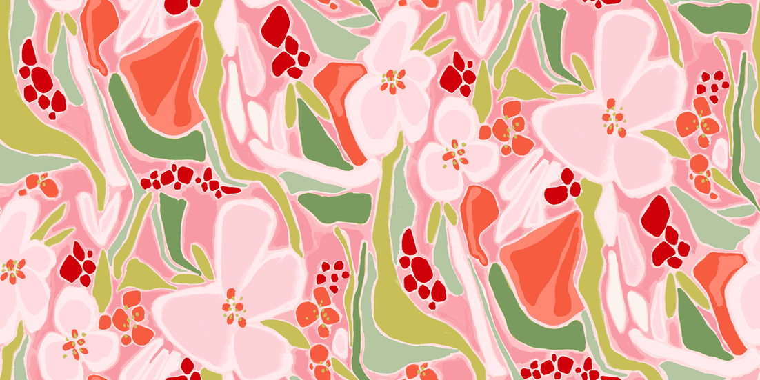 This pattern began as an exploration of abstraction and color techniques used in early 20th century art movements like Fauvism and Impressionism. I love turning to art history when I need inspiration and emulating a movement with my own artistic style to create a modern pattern that is still rooted in traditional art.